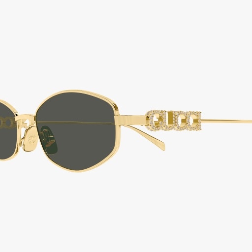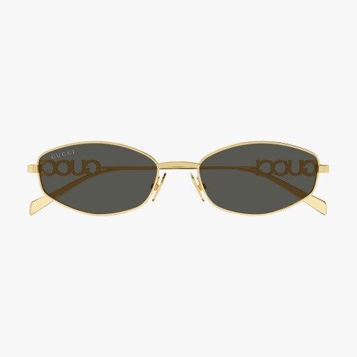 Metal styles characterized by the enriching tridimensional Gucci lettering logo on the temple. Almond narrow shape. Cool and trendy SKUs featuring both solid and Guccissima lens.DETAILSBRAND LINE NAME OF BRANDCOLLECTION SPRING SUMMER January 2025GENDER WomanFITTING InternationalCOLORSFRONT GOLDTEMPLE GOLDLENS GREYMATERIALSFRONT MAIN METALTEMPLE MAIN METALLENS BIO NYLONLENSBASE S02HEIGHT 33.50DIAGONAL 56.80TREATMENT NONE