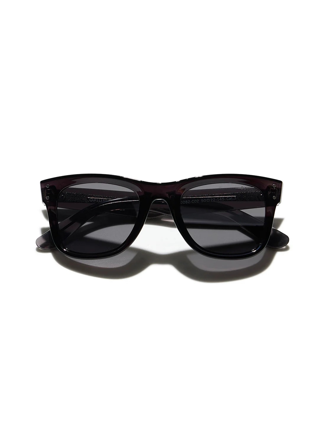"Inspired by a classic design that has been around since the 1950s, the Opium sunglasses fare better than most when it comes to putting you in power. It’s not without reason that wayfarers have endured in the fashion cliques of the world for more than seven decades. LENS FEATURES UV Protection SIZE Lens Diameter:50 Bridge Width:22 Temple Length:145 MATERIAL Lens:POLYCARBONATE Frame:PLASTIC FRAME Type :FULL RIM Finishing :SHINY GENDER MEN"