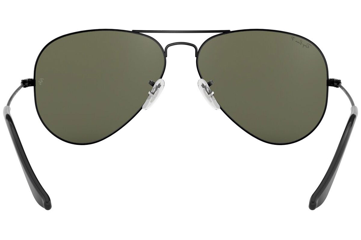 Model code: RB3025 002/58 62-14 Currently one of the most iconic sunglass models in the world, Ray-Ban Aviator Classic sunglasses were originally designed for U.S. aviators in 1937. Aviator Classic sunglasses are a timeless model that combines great aviator styling with exceptional quality, performance and comfort. With a classic gold frame, you can see the world through a variety of lens colors including crystal brown, crystal green, G-15 polarized and more that provide optimum visual clarity and 100% UV protection. Frame material: Metal Frame color: Black Lenses: Polarized Green Classic G-15 Lens Category: 3 Shape: Pilot Size lens-bridge: 62 14 Temple Length: 135