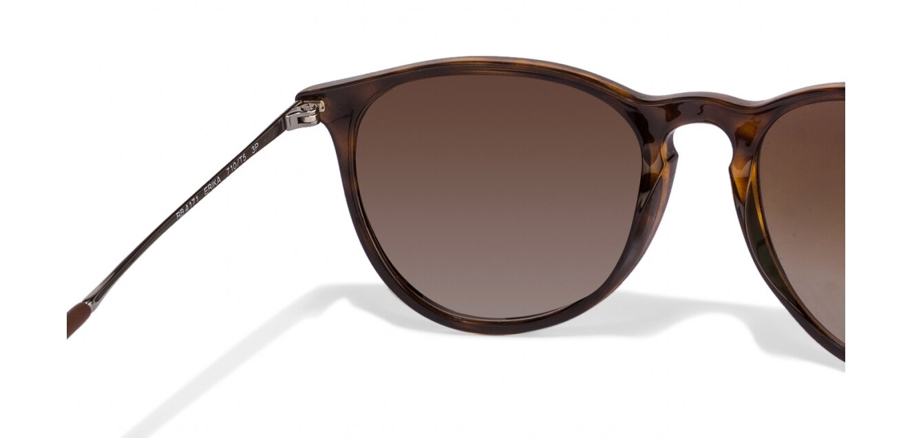 Model code: RB4171 710/T5 54-18 Color your world and complement your look with perfect glare free vision. Erika frames are the perfect accessory with conventional facades or light rubber, metal branches and camber tone that will set you apart from the crowd. The round shaped oversized lenses provide 100% UV protection and the polarised lenses block 99% of reflected light for enhanced vision. The flexible bridge adds a twist to the modern design. Look great and see even better in the Polarised Erika frames. Frame material: Nylon Frame color: Tortoise; Gunmetal Lenses: Polarized Brown Gradient Lens Category: 3 Shape: Pilot Size lens-bridge: 54 18 Temple Length: 145