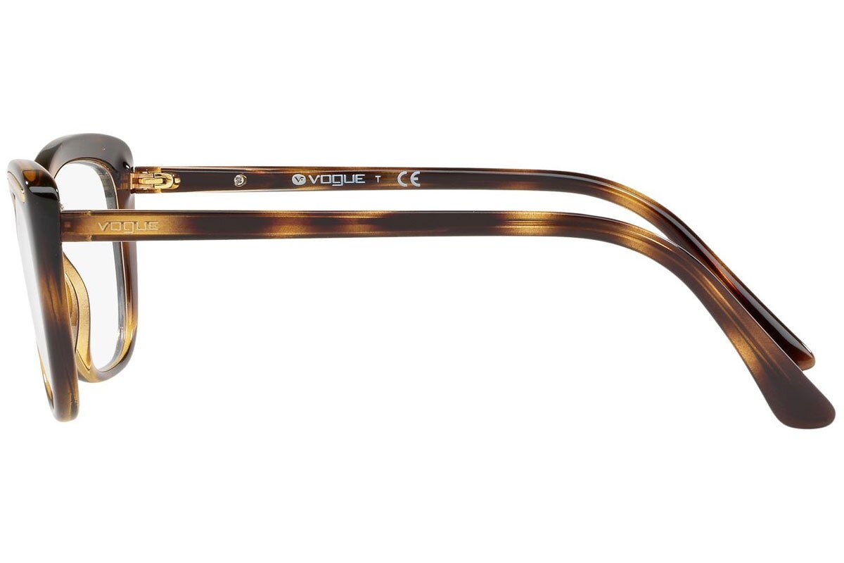The Vogue VO 5218 is a perfect choice of Eyeglasses from the remarkable Vogue collection. These exciting Eyeglasses have a compelling arrangement of remarkable features. Black is the most common color seen in the dark. Get that subtle cunning look in this semi cat eye shape. If you're looking for something that's compatible with bi-focal or progressive lenses, then you've found it. If you're concerned about sun protection, you are able to add custom polarized or non-polarized clip-on sunglasses to these frames. The width of the bridge of this frame is 17 millimeters. Crafted from plastic and carefully constructed to display a bold look and stylish flair. It’s nature’s color for water and sky. The eyesize of this item is 52 millimeters. A deep brown that does not have any red, orange or purple undertones. Material:Plastic Brand:Vogue Rim Type:Full Rim Frame Shape:Semi-Cat-Eye Rx Eligibility: Prescription , Bi-Focal/Progressive Eye Size: 52 Bridge Size:17 Temple Size:140