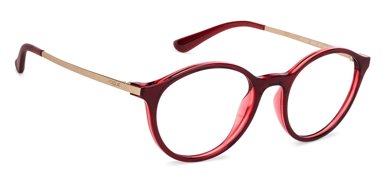 Vogue eyewear reflects the dominant fashion trends of the moment becominga truely international comtemporary fashion brand. Model Code: VO5223 2636 50-19 Frame shape: Phantos Front color: Maroon Lens color: Demo Lens Frame material: Nylon & Propionate