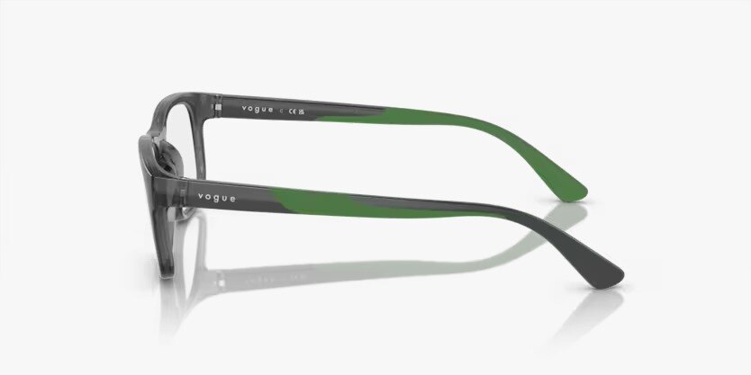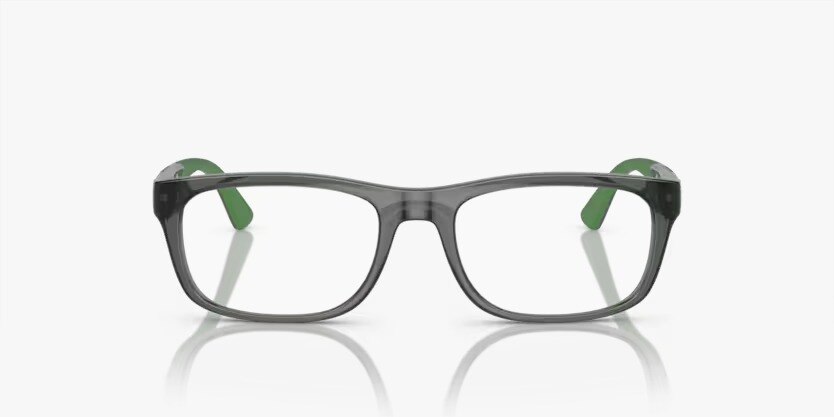 "These highly requested flex hinge styles are equal parts comfy and cool, staying in place with soft grip rubber temples. Featherweight bio-based nylon fiber makes this style super easy to wear, with playful two-tone temples that make a statement.Frame Color Transparent dark grey Bridge design Saddle bridge Bridge size 17 Exact size L, XL Finishing Polished Front material Nylon Fit High bridge fit Frame fitting Narrow Hinge to hinge 121.0, 125.0 Shape Rectangle Caliber 48, 50 Temple color Full grey/dark green rubber Temple length 130 Temple material Nylon Rim type Full rim Lens Lens color Demo lens Effective diameter 51.0, 53.0 Lens base Base 4 Lens base color Demo lens Lens height 34.0, 35.0 Lens width 48.0, 50.0 General Gender Man Launch date code 202307, 202307 Marketing theme Kids Age group Children Face shape Oval-round"