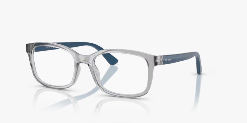 "Built with sleek rectangular fronts and flex hinges, these frames are as durable as they are stylish – perfect for boys who are always on the move. Cool colors amp up the swagger, while the slim temples ensure all-day comfort without compromising on style. Frame Color Transparent grey Bridge design Standard Bridge size 17 Exact size L, XL Finishing Polished Front material Nylon Fit High bridge fit Hinge to hinge 122.0, 127.0 Shape Pillow Caliber 48, 50 Temple color Poseidon blue Temple length 130 Temple material Nylon Rim type Full rim Lens Lens color Demo lens Effective diameter 51.0, 53.0 Lens base Base 4 Lens height 35.0, 37.0 Lens width 48.0, 50.0 General Gender Man Launch date code 202407, 202407 Marketing theme Kids Age group Children Face shape Oval-heart-square "
